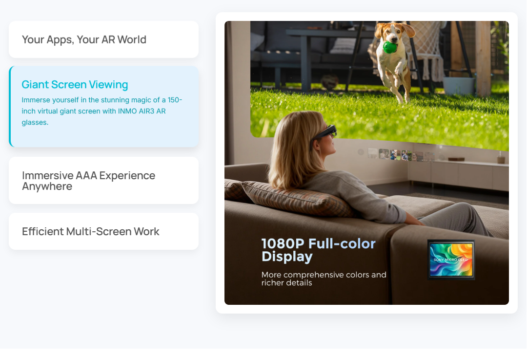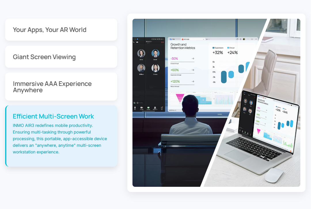 AI AR Smart Glasses INMO AIR 3 1080P Display 16MP Camera OLED Screen Independent Android 600 nits Brightness Open API SDK CE