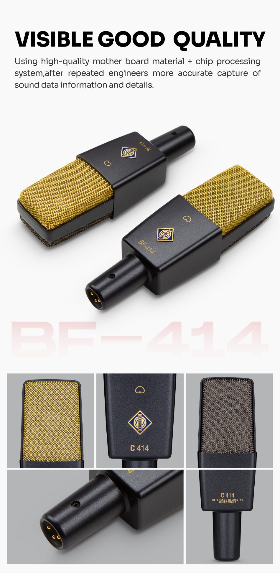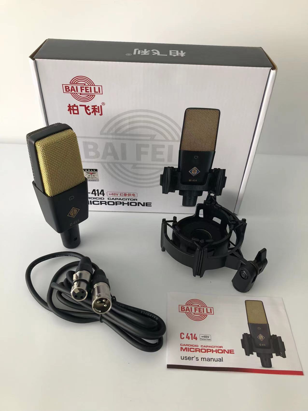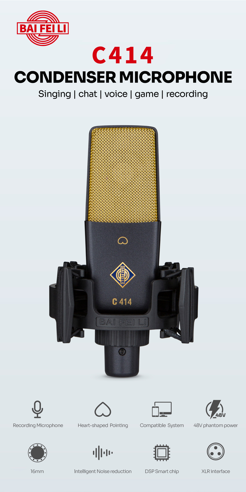 BAIFEILI C414 Professional Portable Metal Condenser Microphone with Stand for Gaming Recording Youtube Chatting