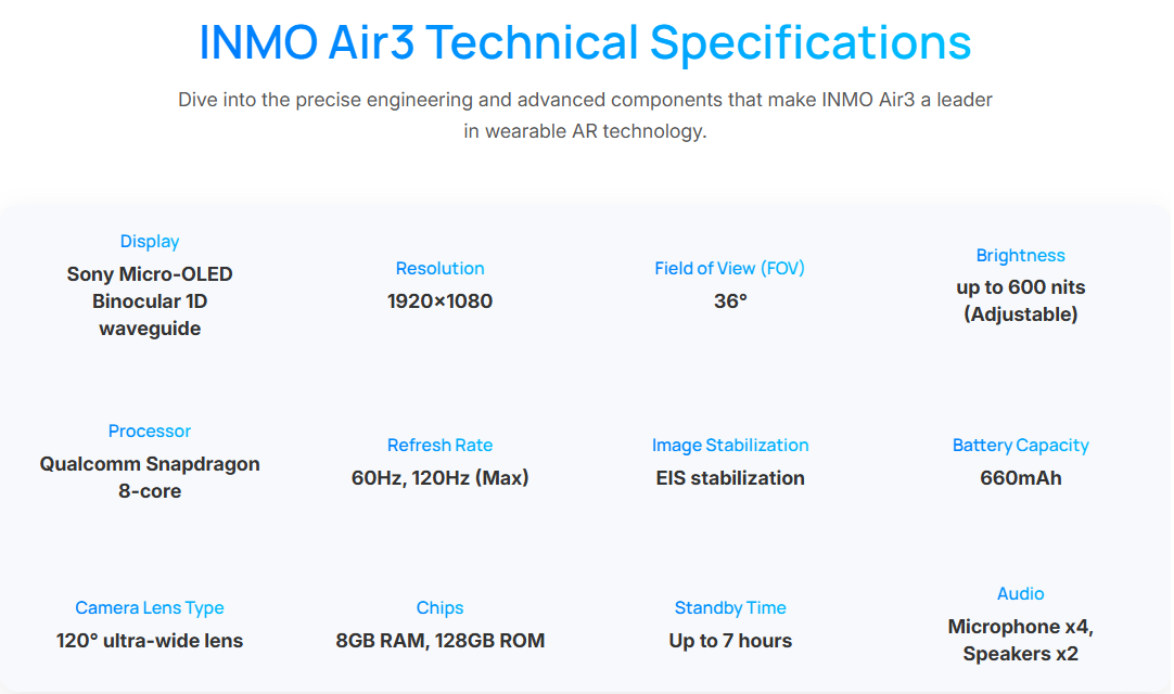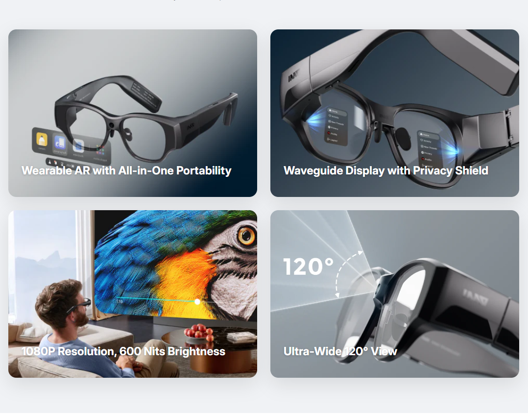 AI AR Smart Glasses INMO AIR 3 1080P Display 16MP Camera OLED Screen Independent Android 600 nits Brightness Open API SDK CE