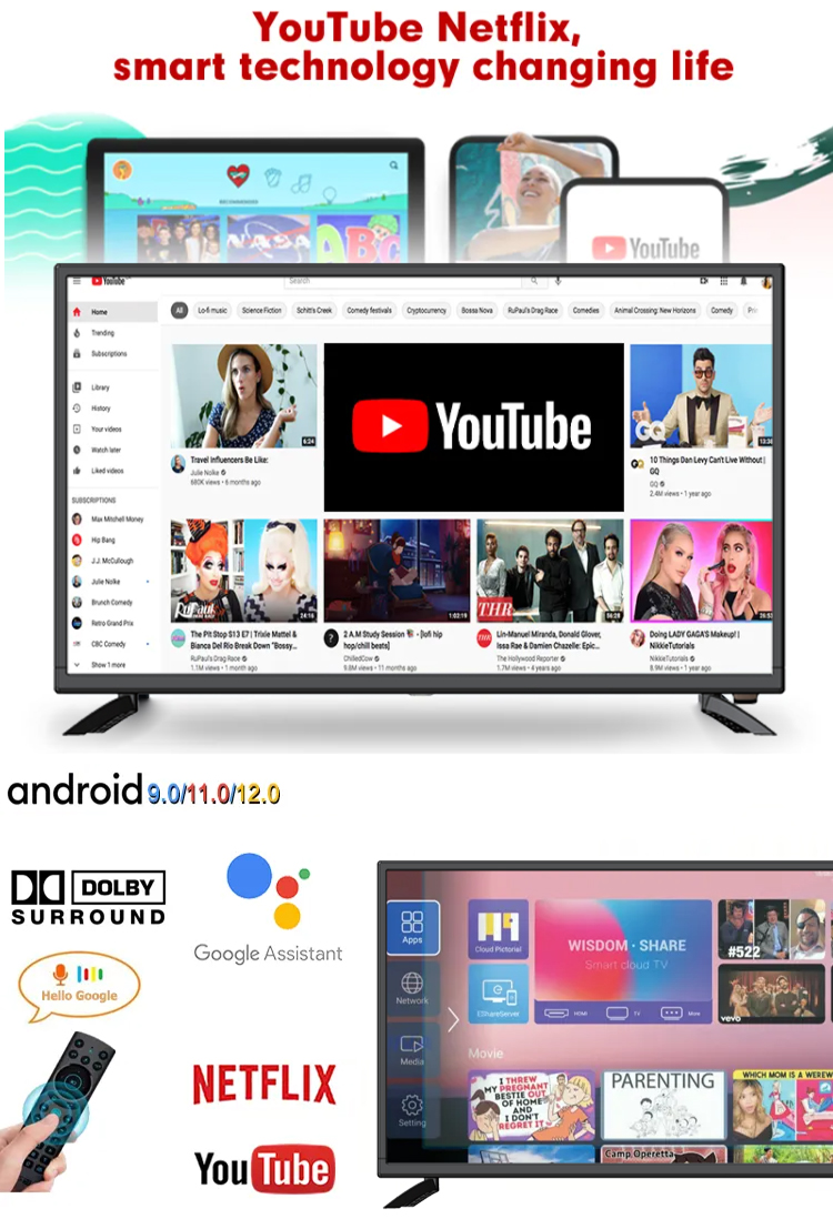 Smart Tv 55 Inches Television 4k 32 40 43 50 65 Inch LED Tv With Android WiFi 45 Inch Smart Tv